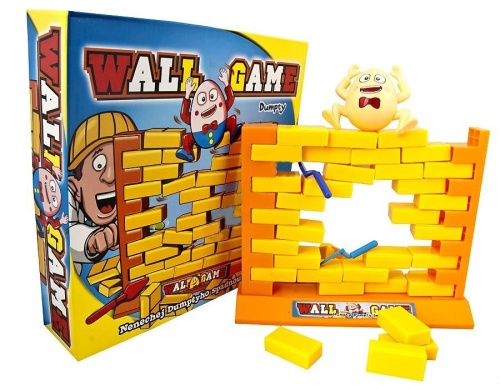 Skvělá hra pro 2 - 4 hráče od věku 3 let. Pravidla této hry jsou velmi jednoduchá a můžete hrát s kýmkoliv. Nejprve postavíte celou zeď a následně odebíráte po jedné cihličce. Musíte však dávat pozor, aby při odebírání nespadlo vajíčko umístěné nahoře zdi. Komu figurka vajíčka spadne, tak prohrává. Sada obsahuje 44 cihel, 4 lžíce. Zdolejte tuto obtížnou leč zábavnou zeď, se kterou si užijete plno legrace a pobavíte se s rodinou nebo přáteli. Hra padající cihly je originálním dárkem pro děti i rodiče.