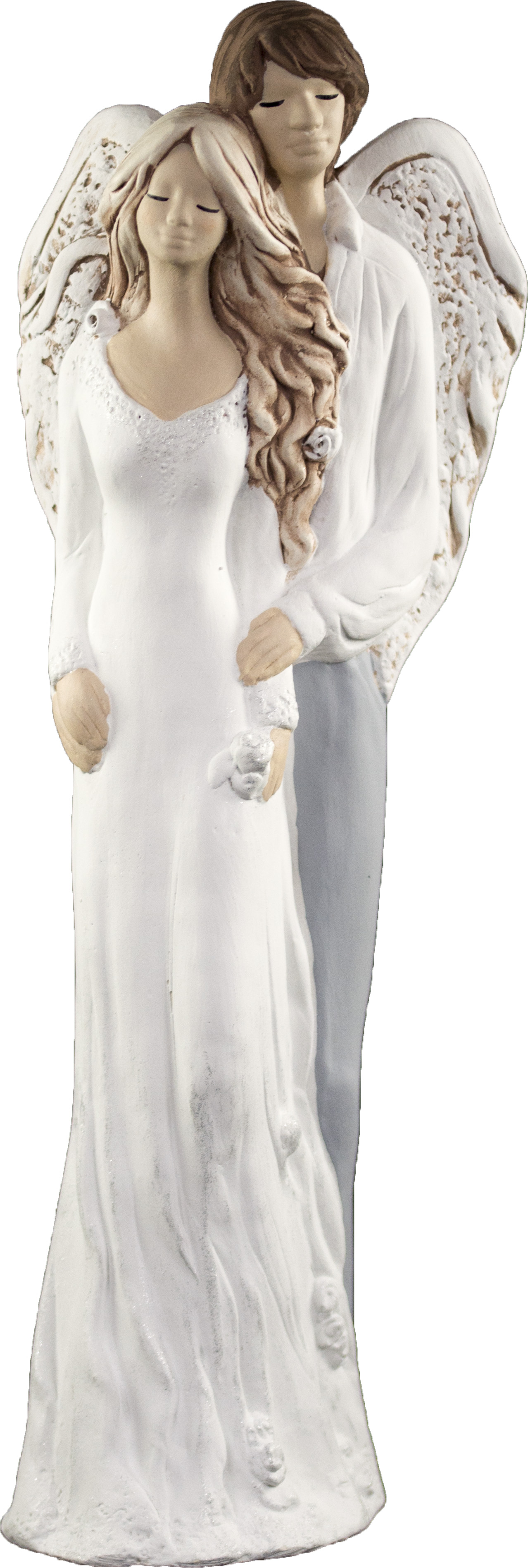 Vkusná soška mladého páru, kdy muž má podobu chránícího anděla. Příjemná moderní a velmi elegantní dekorace vynikne na každé komodě a polici v interiéru.